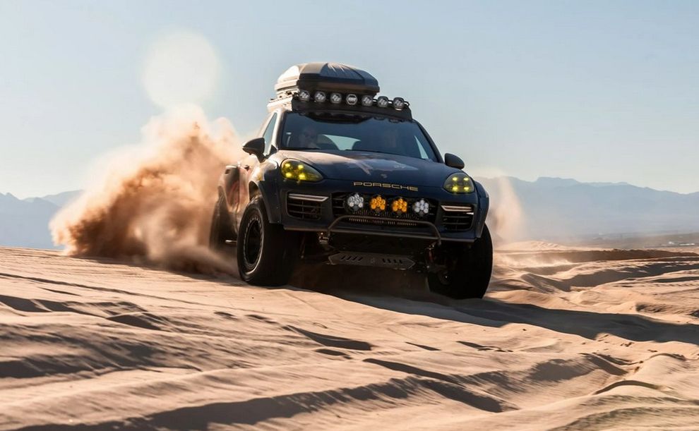 Снаружи Cayenne получил полный комплект экипировки для серьёзного офф-роуда. Новый передний бампер с защитой, светодиодная люстра на крыше и полноценная запаска на пятой двери выдают в нём подготовленного путешественника. А выхлопная система с двумя патрубками по бокам бампера не только улучшила проходимость, но и добавила внешности брутальности. Подвеска – особая гордость проекта. Здесь установлены длинноходные амортизаторы, которые, по заявлению создателей, позволяют машине парить над песчаными дюнами и не замечать камней, поскольку дорожный просвет вырос минимум на 15 сантиметров. В салоне тоже полный порядок. Помимо стандартной роскоши, покупателям предложат системы помощи на бездорожье, спутниковую связь, специальную отделку интерьера и яркую подсветку.