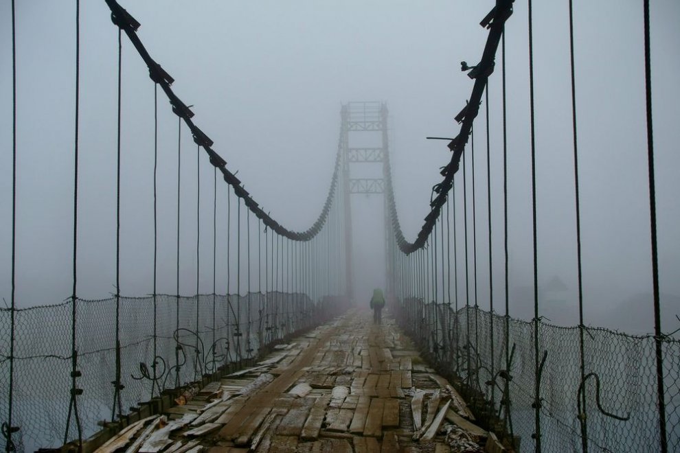 Старый мост через реку Катунь в посёлке Тюнгур. Ландшафты Горного Алтая чрезвычайно разнообразны. Если на севере, в районе села Чемал, тепло и горные склоны покрыты лесами, то ближе к югу, в районе посёлка Курай и Чуйской степи, местность более степная, с горами, увенчанными снежными шапками (Северо-Чуйский и Южно-Чуйский хребты). А в районе посёлка Усть-Кокса находятся самые холодные места Алтая, и леса там почти нет.