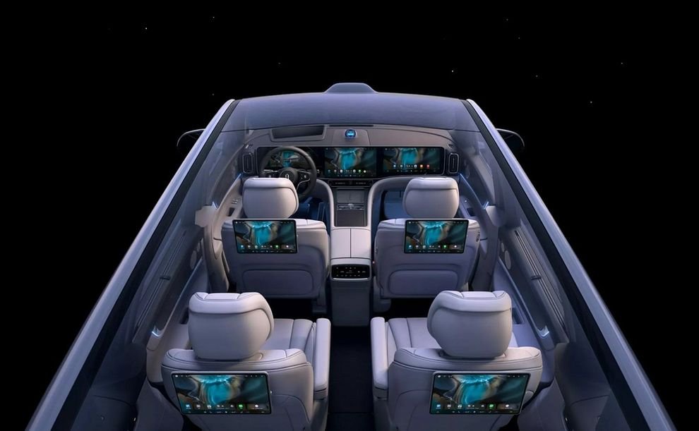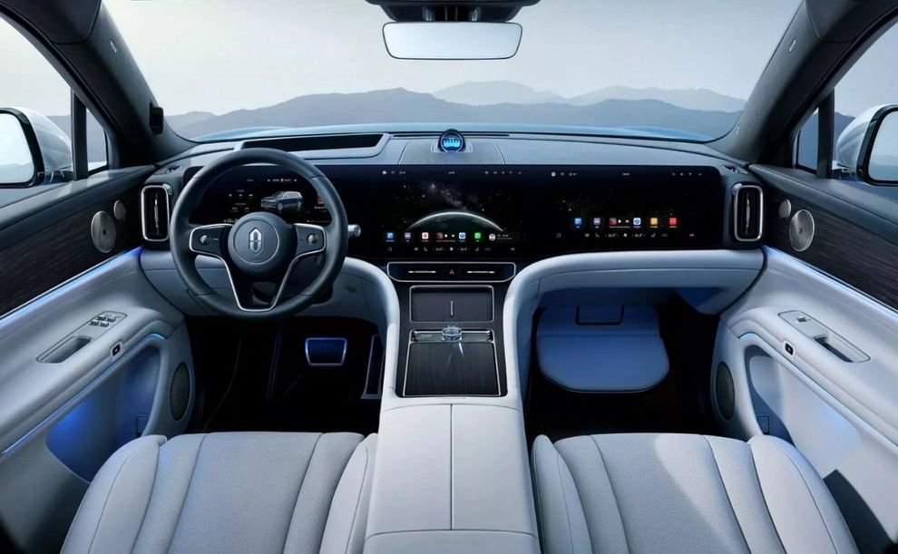 Благодаря элегантному дизайну и большим габаритам, Aito M9 оказывается в нише BMW X7 и Mercedes-Benz GLS, а также некоторых моделей местного рынка, о которых вы никогда не слышали. Его высокотехнологичные фары оснащены встроенным проектором, способным проецировать изображение и видео, создавая 100-дюймовый дисплей на любой плоской поверхности. Внутри, спускающаяся с потолка 32-дюймовая выдвижная панель напоминает Theatre Screen BMW i7, а приборная панель состоит из трёх дисплеев, которые образуют один сплошной экран, похожий на гипер-экран Mercedes. Но Huawei этого показалось недостаточно, и каждый из четырёх задних пассажиров получил свой отдельный планшет, работающий на системе Huawei HarmonyOS 4, которой китайцы пытаются заменить гугловский Android.