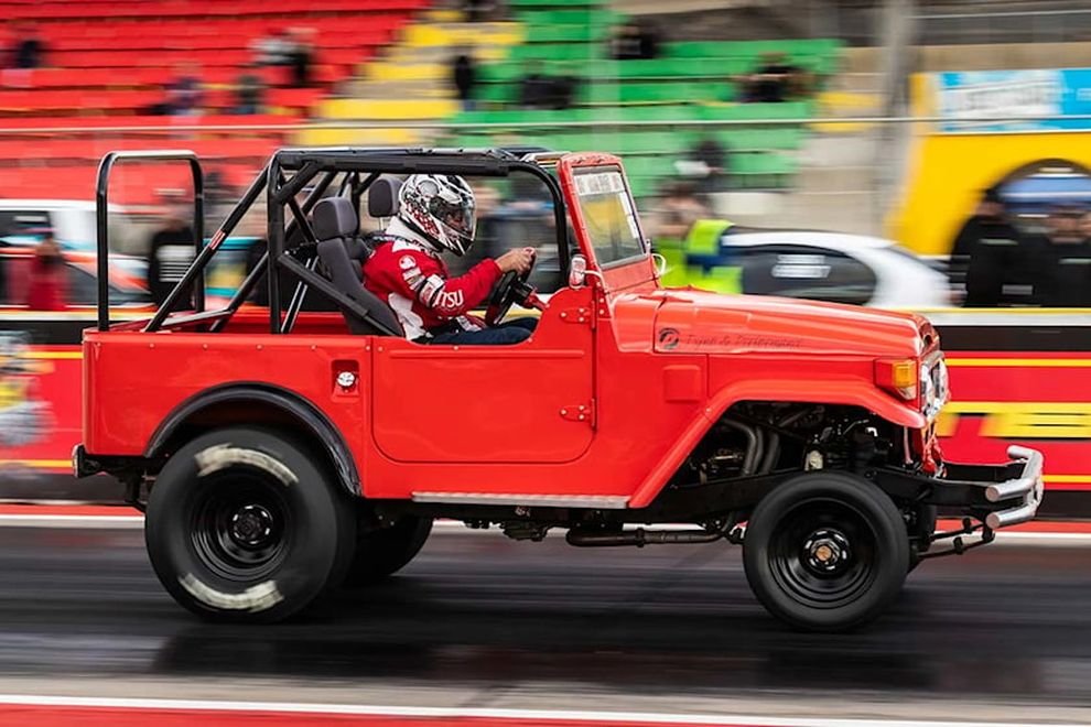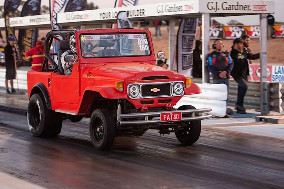 Австралия – родина дрэг-рэйса Land Cruiser FJ40 Брюса Кристиана. Он построил его для уличных гонок, каждый раз привозя на старт на прицепе. Очевидно, что внедорожник далёк от своих серийных собратьев, но панели кузова в основном оригинальные, а вот 6.2-литровый джиэмовский V8 – нет.