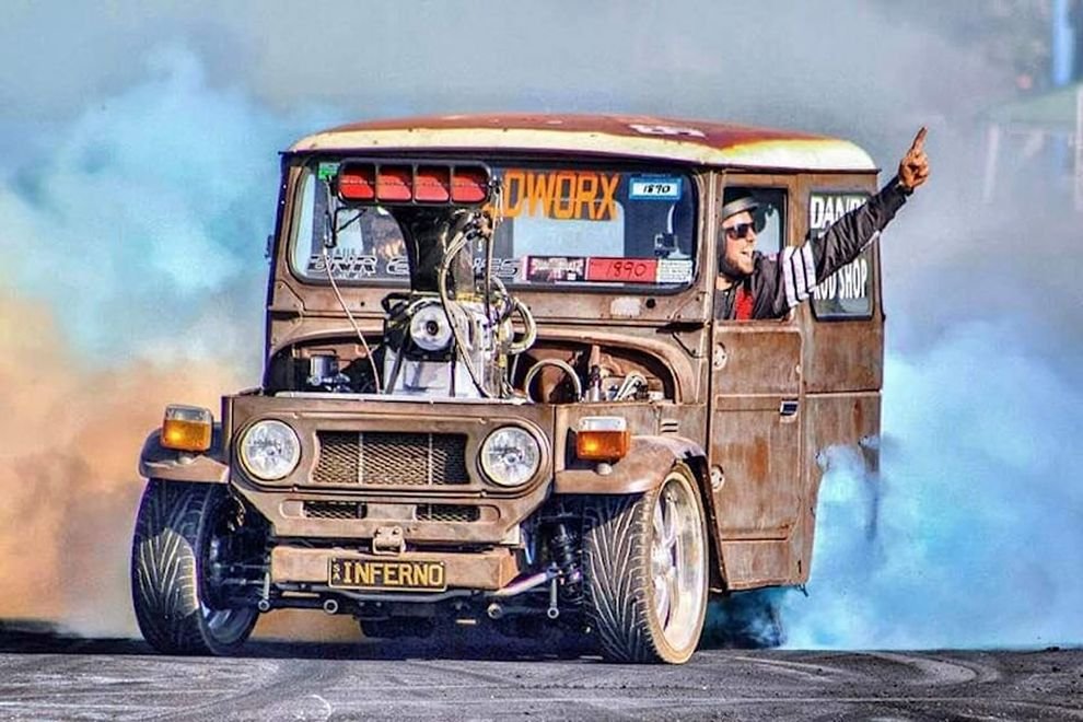 Составление этого списка напомнило нам, что нужно уделять больше времени новостям из Австралии. Удивительно, но этот безумный внедорожник – автомобиль для ежедневных поездок Тома Белтраме. Видимо сначала он хотел сделать что-то другое, но потом взял Land Cruiser FJ40 и воткнул в него джиэмовский big block V8, разогнанный до восьми литров. Ну и наддув. Немало усилий было потрачено на то, чтобы установить сзади специальную четырёхрычажную подвеску. И теперь это дикая машина для дрифта.