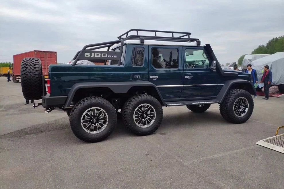 Mercedes-Benz G63 AMG 6x6 был довольно дорогим автомобилем, оснащённым дополнительной осью и парой колёс, а также 536-сильным V8 AMG twin-turbo, генерирующим 760 Нм крутящего момента. Beijing Auto BJ80 – дешёвая подделка с 2.3-литровым четырёхцилиндровым мотором Saab с одной турбиной, права на который «Пекинская автопромышленная корпорация» (BAIC) купила у GM ещё в 2009-м. Нам особенно понравилось расположение буксировочного крюка и значка 6x6.