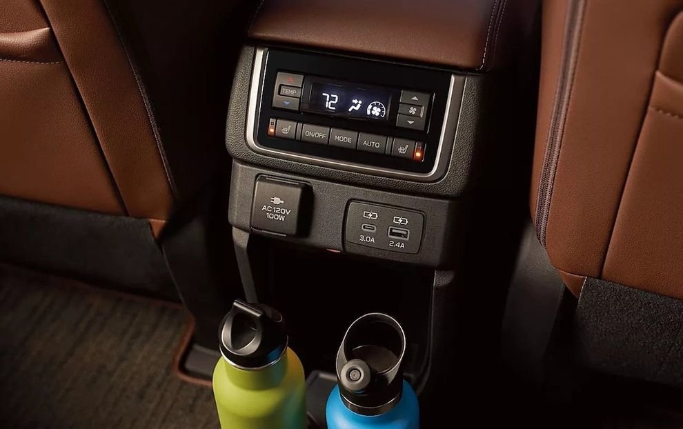 Комплектаций стало шесть: «Базовая», «Премиум», «Оникс», «Лимитед», «Оникс Лимитед» и «Туринг». Новая «Оникс Лимитед» звучит наиболее пафосно и стоит 46 300 долларов (3,75 млн рублей). У нас была версия попроще – «Премиум», отличающаяся от «Базовой» возможностью выбора конфигурации заднего дивана, wi-fi точкой доступа, системой удалённой связи Subaru Starlink, подогревом сидений и климатом второго ряда, которым можно управлять не только сзади, но и спереди, при желании заблокировав эту возможность для задних пассажиров. Машина со светлым тканевым салоном не настраивает на премиальный лад, но справедливости ради стоит заметить, что Subaru постепенно эволюционирует. В Ascent мягкие материалы торпедо, имитация строчки, качественный спортивный руль. Верхняя часть карт дверей отделана мягким пластиком, подлокотники на дверях кожаные. Правда, если спуститься чуть ниже, то пластик станет пожёстче и на вид попроще, но это, скорее, норма для класса.