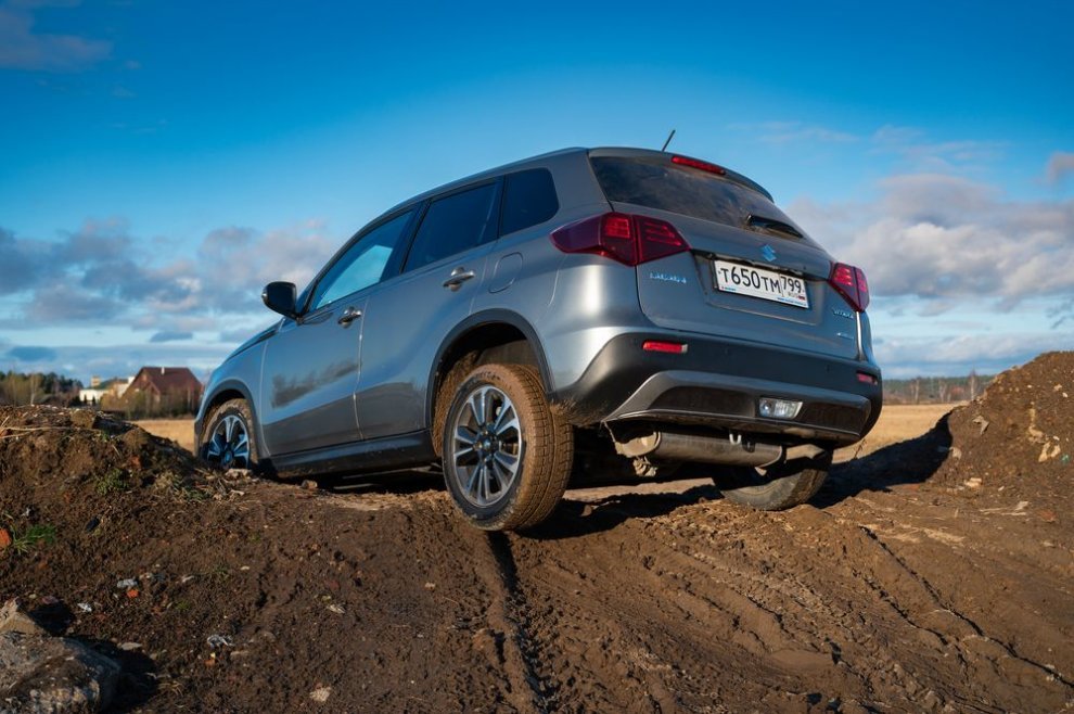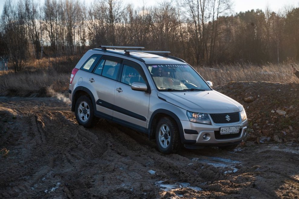 С точки зрения внедорожных параметров и потенциала, Grand Vitara выигрывает у Vitara по ряду позиций, кроме разве что веса и эффективности ассистентов. Но это имеет решающее значение, и в реальности оказывается, что в пределах лёгкого офф-роуда у них паритет. Напомню, «лёгким» мы обычно называем бездорожье, которое не ищем специально, ради приключений. Другими словами, если вы предполагаете использовать автомобиль в местах, где единственной дорогой является колея от «харвестера», то ни одна из «Витар» вас не спасёт. Для таких случаев у Suzuki есть Jimny. Тем не менее, на нашем сравнительном тесте обе машины преодолели бруствер высотой сантиметров шестьдесят. Преодолели, понятное дело, по диагонали и согласно рекомендациям признанных мастеров внедорожного вождения. У Grand Vitara оказался больший запас по геометрии, а Vitara намного приятнее управлять – и дозирование газа точнее, и рулевое понятнее. А «газ-тормоз» так и вовсе можно ползти по-черепашьи. «Гранд» на малом газу уж слишком рвётся в бой, подёргивается и откровенно борется с осторожным водителем. Отлично отработала противобуксовочная система Vitara, подхватив вывесившееся колесо настолько быстро, что движение не прекращалось ни на секунду. А у прежнего поколения, по крайней мере в его российской версии, ни противобуксовочной, ни системы стабилизации не было. Зато она чудно разворачивается ручником...