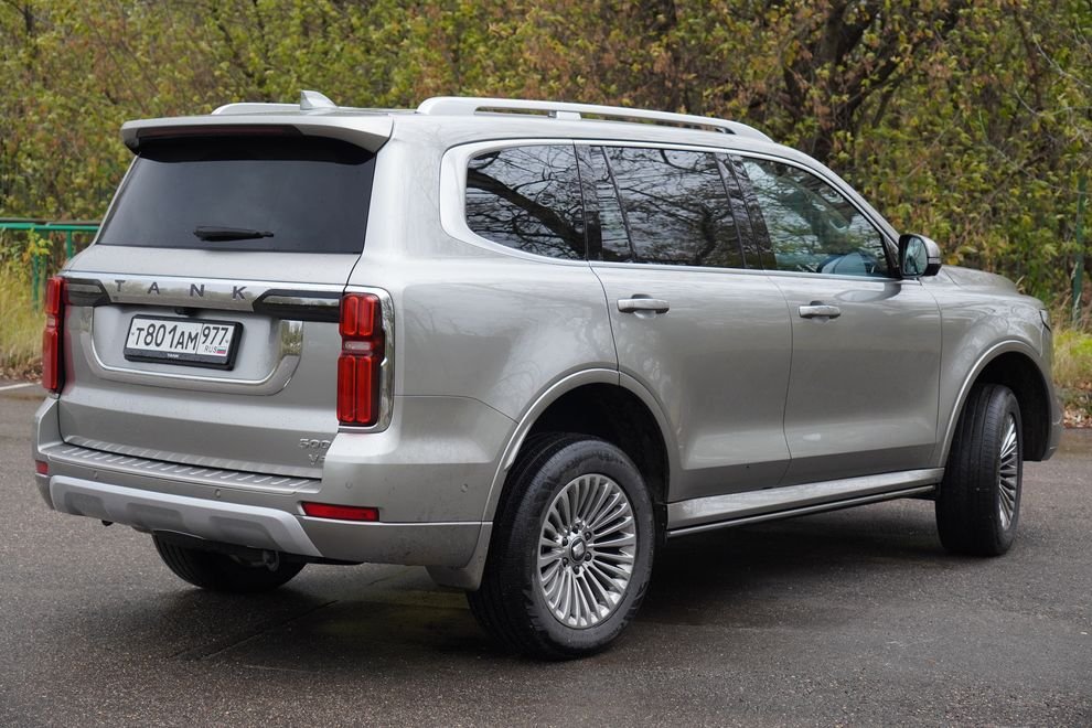 Внешне Tank 500 и правда впечатляет, вызывая ассоциации, скорее, не с европейскими, а американскими внедорожниками вроде «Линкольна Навигатора». (Передок и вовсе напоминает легендарный «Додж Рэм»). Внутри – не хуже. Царство дорогой кожи, алькантары, бесконечного списка опций.