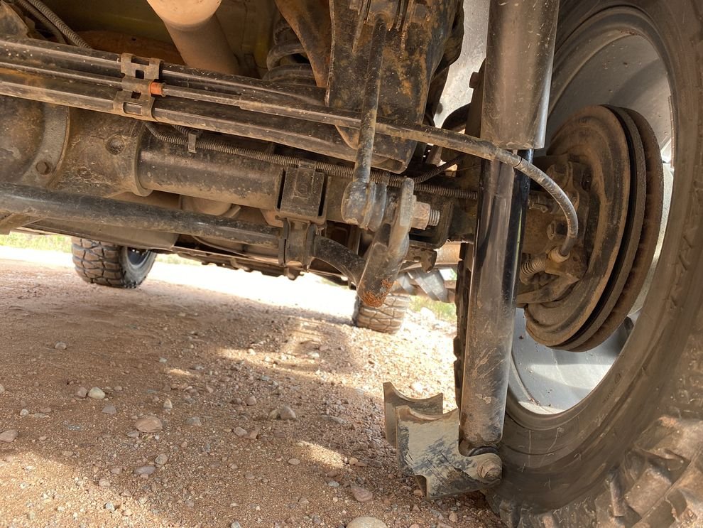 Это крепление держалось на честном слове и отвалилось потому, что было приварено лишь в нескольких точках. Удивительно, что этого не произошло раньше. Единственной возможностью продолжить путь, было снять амортизатор и осторожно двигаться на одной пружине (хорошо, что наша машина не на пневме). Был риск, что пружина вылетит на какой-нибудь кочке, и тогда путешествие придётся закончить досрочно. Мы ехали медленно и безрадостно, надеясь добраться до Кузомени засветло.