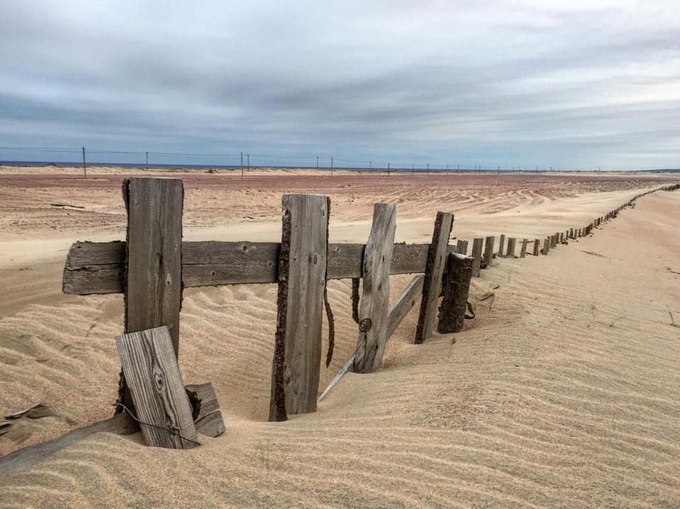 Но если честно, это не пустыня, а антропогенная пустошь, массив красноцветных песков, которые покрывают 2 400 гектаров – почти 15 километров вдоль побережья Белого моря, в районе устья реки Варзуга.