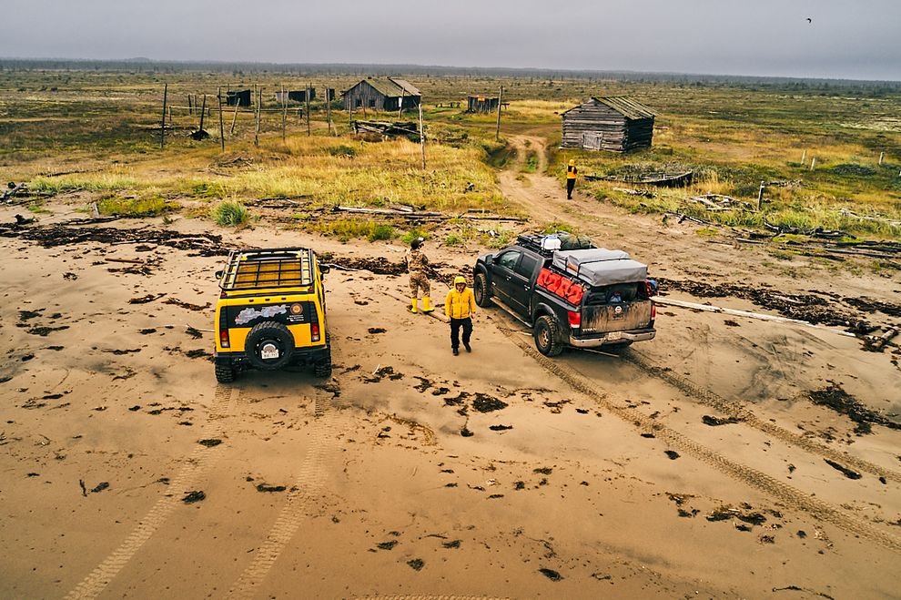 За приемлемую премию Яков помог отремонтировать Hummer, и когда мы собрались прокатиться по ближайшим окрестностям, вдалеке показались два пикапа – Nissan Titan и Mitsubishi L200. Это был мой старый друг Лёша с командой. С ним мы созвонились накануне, и оказалось, что они разбили лагерь на мысе Корабль, совсем недалеко от Кузомени. Грешно не воспользоваться возможностью выпить вместе чаю, ведь в Москве встретиться гораздо сложнее, чем за тысячи километров от дома.