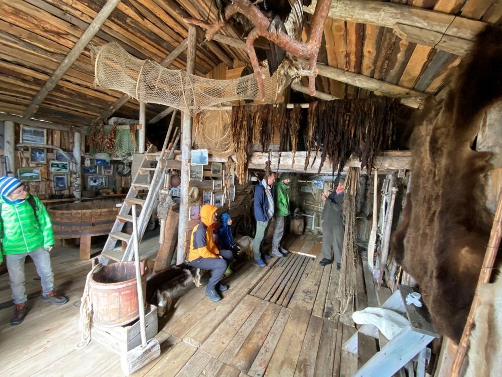 Тоня Тетрина – это историко-этнографический музей с удивительной экспозицией, уютными домиками, в которых можно остановиться на ночь, с банькой и невероятной атмосферой единения с природой. Находится он на Терском берегу, в двадцати километрах от Умбы. Мне уже довелось бывать здесь в 2017 году. Мои собаки тогда случайно разорвали рыболовную сеть Александра Борисовича, хозяина тони, запутавшись в ней, как мухи в паутине. Я потом приложил много усилий, чтобы передать ему с друзьями новую сеть.
