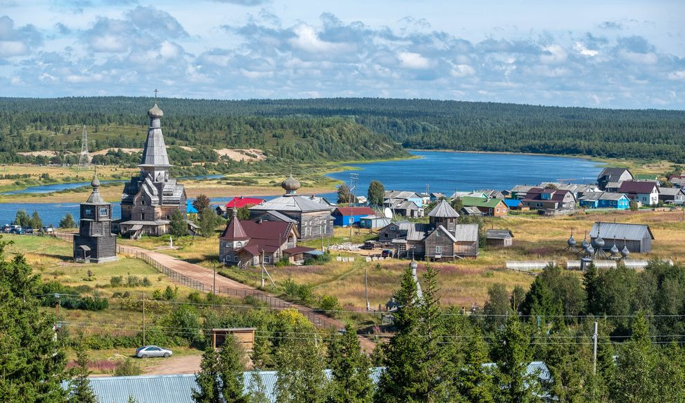 Что интересно, село разделено на две части рекой Варзуга, а моста нет. Добраться на другой берег можно всего за 10-20 рублей на лодке, которая выполняет роль общественного транспорта. Мы поднялись на смотровую площадку, зашли в церковь святителя Афанасия Великого и поехали дальше.