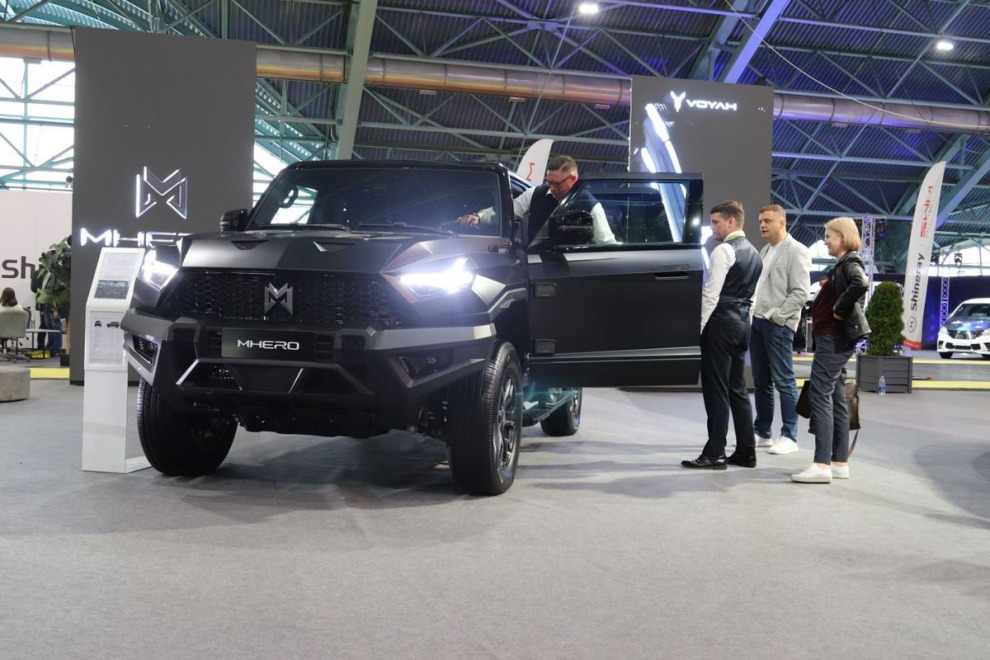 На стенде компании Voyah демонстрировали самый заряженный, в прямом и переносном смысле слова, гибридный внедорожник M-Hero 917. Стандартного 816-сильного зелёного монстра (заявленный пробег на одной зарядке 1 026 км, разгон до сотни 6 секунд) дополнили лебёдкой, разборными дисками с бэдлоками, грязевой резиной, экспедиционным багажником с двойной (рабочей и ходовой) световой рампой и складной лесенкой. Полноуправляемое шасси, блокировки дифференциалов, понижающие передачи в редукторах мостов, внедорожный круиз-контроль, клиренс 326 мм, угол въезда 36,8 градуса, угол съезда 37,5 градуса, угол рампы 27,9 градуса. Глубина преодолеваемого брода до 900 мм. Потенциал чудовищный, но с учётом массы в 3,5 тонны, без лебёдки в грязь лучше не лезть.