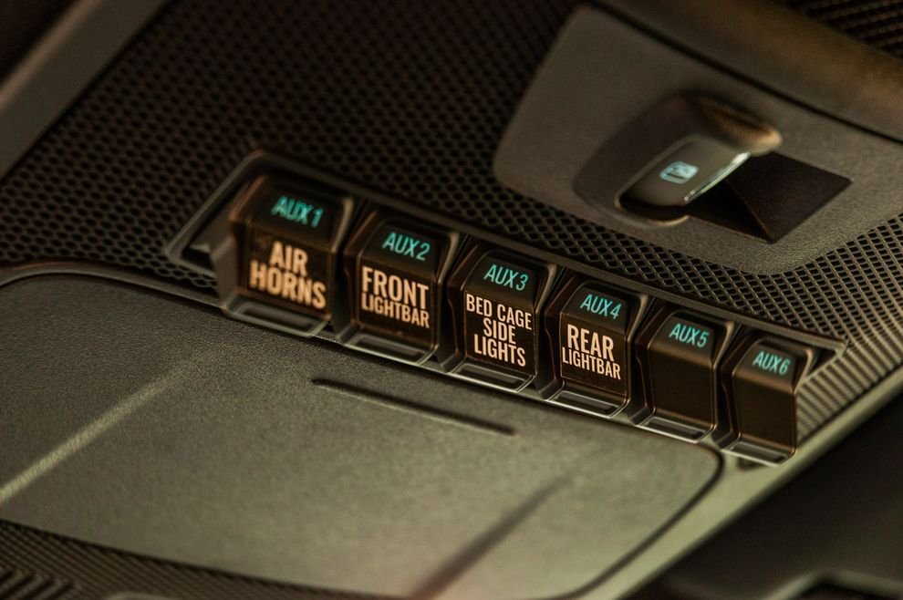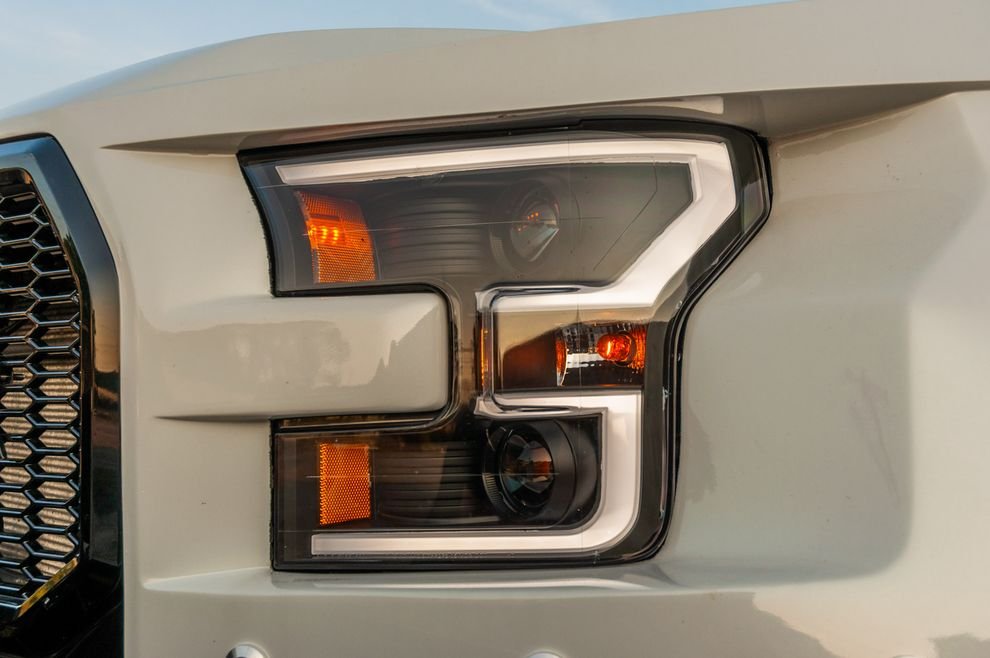 На решётке радиатора установили блок фар Anzo и встроили янтарные ходовые огни. В MegaRexx предпочитают использовать круглые фары дополнительного света, потому что они «задают драйверский тон и придают дерзкий вид». Заезженные светодиодные панели таким эффектом не обладают. Стандартные бамперы заменили на сварные стальные, с накладками из алюминиевых листов. В компании подчёркивают, что рассматривают своих мега-рапторов как «функциональное передвижное искусство». Они огромны и способны буксировать груз весом до девяти тонн (для частой буксировки предусмотрены даже задние подушки безопасности). При этом залихватский внедорожный вид MegaRaptor не должен вводить вас в заблуждение – грузовик не предназначен для участия в скоростных рейдах или труднопроходимых трофи. «Его основная функция – буксировать и выглядеть агрессивно» – поясняет Аарон. Модифицированная подвеска и чудовищные габариты, делают его заметно менее экономичным. В городе внедорожный пикап расходует около 20 литров, а на шоссе – около 16 литров на 100 километров, по сравнению с 12-ю литрами Ford F-250 Super Duty с турбодизелем.