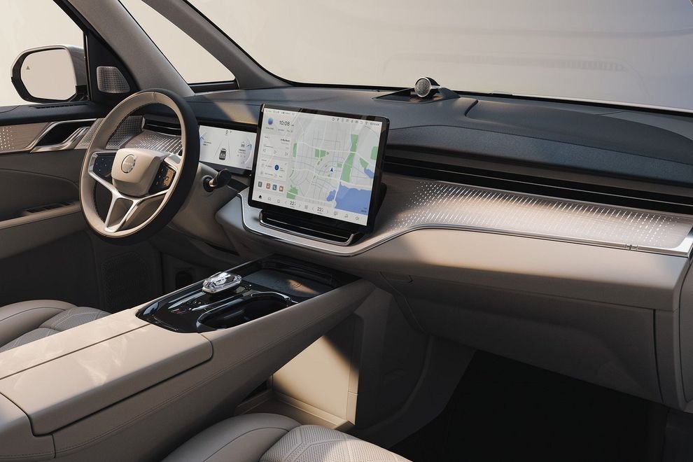 Но настоящей изюминкой ЕМ90 является его интерьер. Благодаря роскошным креслам, электрический минивэн отличается комфортом и технологичностью. На передней панели установлен 15,4-дюймовый информационно-развлекательный экран с голосовым помощником и аватаром Volvo. При этом задние пассажиры могут пользоваться 15,6-дюймовым экраном на потолке. Он подключается к камере для видеозвонков, поддерживая несколько сторонних приложений и проекцию со смартфона. Как и EX90, EM90 обеспечивает максимальные цифровые преимущества, благодаря платформе Snapdragon Cockpit. Тем более, что потолочный экран и информационно-развлекательный дисплей спереди – это лишь два из множества экранов, разбросанных по всему салону. Volvo использовала «интеллектуальные поверхности», тщательно интегрировав элементы управления в роскошные текстуры. Например, пассажиры второго ряда управляют массажем сидений, обогревом и вентиляцией, с помощью изящных деревянных вставок с сенсорным экраном.