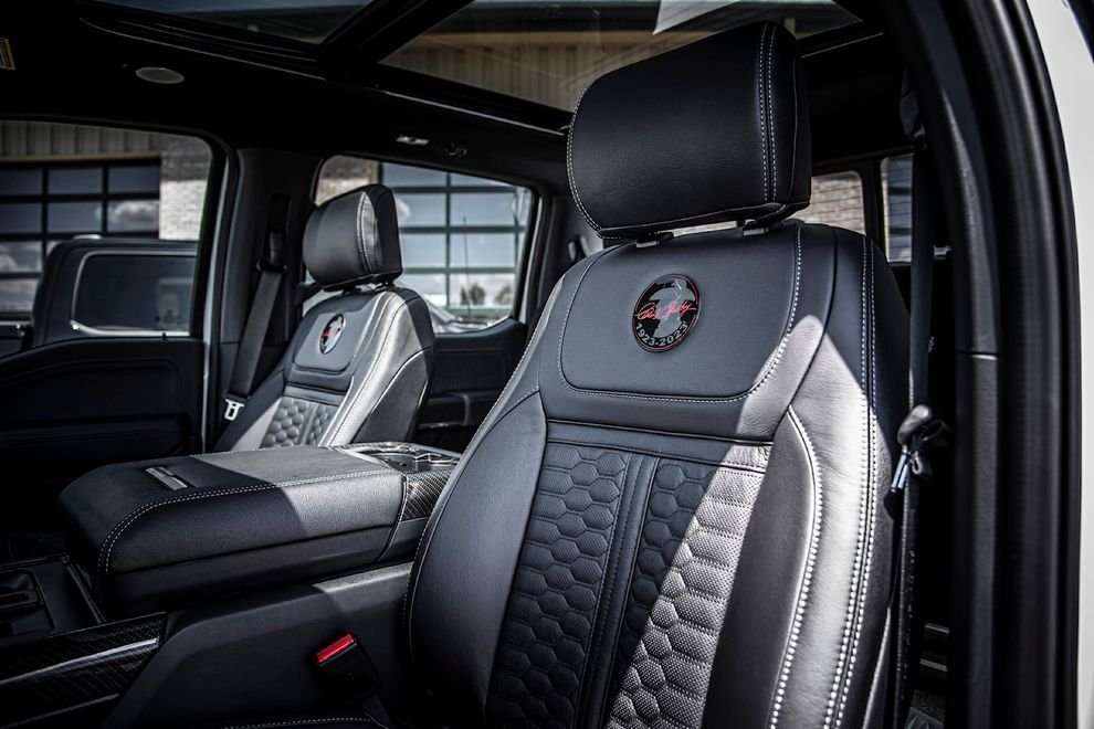 Что касается экстерьера, то ограниченная серия предлагает 22-дюймовые колёсные диски Shelby с шинами BF Goodrich Т/ KO2, боковые подножки с электроприводом, фирменные расширители крыльев и шильдики Shelby Centennial Edition. Эксклюзивные элементы интерьера включают кожаные сиденья Centennial Edition с маркировкой, табличку с юбилейным номером на приборной панели, накладки на педали, а также уникальные коврики для пола.